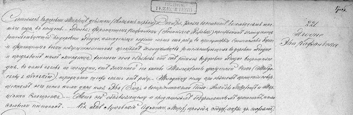 Ewa urodziła się w dniu 20 grudnia 1883 r. o godzinie 17:00 w Jagodnem w rodzinie Franciszka Rafalskiego i Małgorzaty z Sieczków. Została ochrzczona w dniu 21 grudnia 1883 r. w kościele p.w. św. Leonarda w Mircu. Rodzicami chrzestnymi byli: Alojzy Potrzeszcz i Marianna Smogorska.