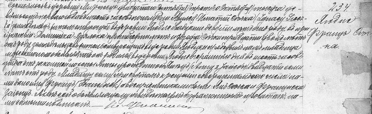 Franciszek zmarł w dniu 22 grudnia 1962 r. w Jagodnem w wieku 61 lat. Został pochowany na cmentarzu parafialnym w Mircu.