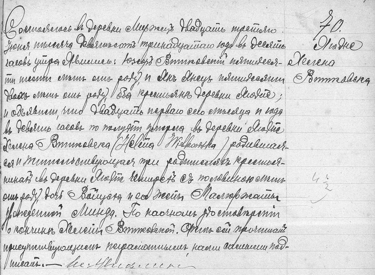 Helena zmarła jako dziecko w dniu 21 czerwca 1913 r. o godzinie 21:00 w Jagodnem w wieku 4,5 roku. Została pochowana w dniu 23 czerwca 1913 r. na cmentarzu parafialnym w Mircu.