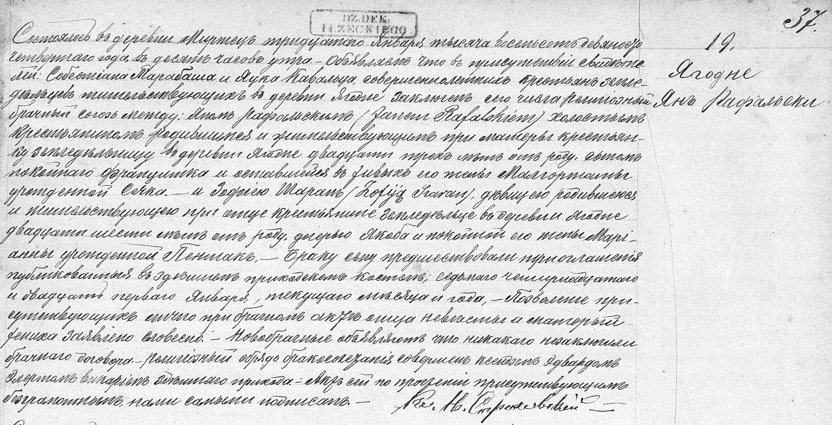 W dniu 30 stycznia 1894 r. w wieku 24 lat w kościele p.w. św. Leonarda w Mircu zawarł związek małżeński z Zofią Szaran, urodzoną w w dniu 10 maja 1869 w miejscowości Jagodne, córką Jakuba Szarana i Marianny z Piętaków.