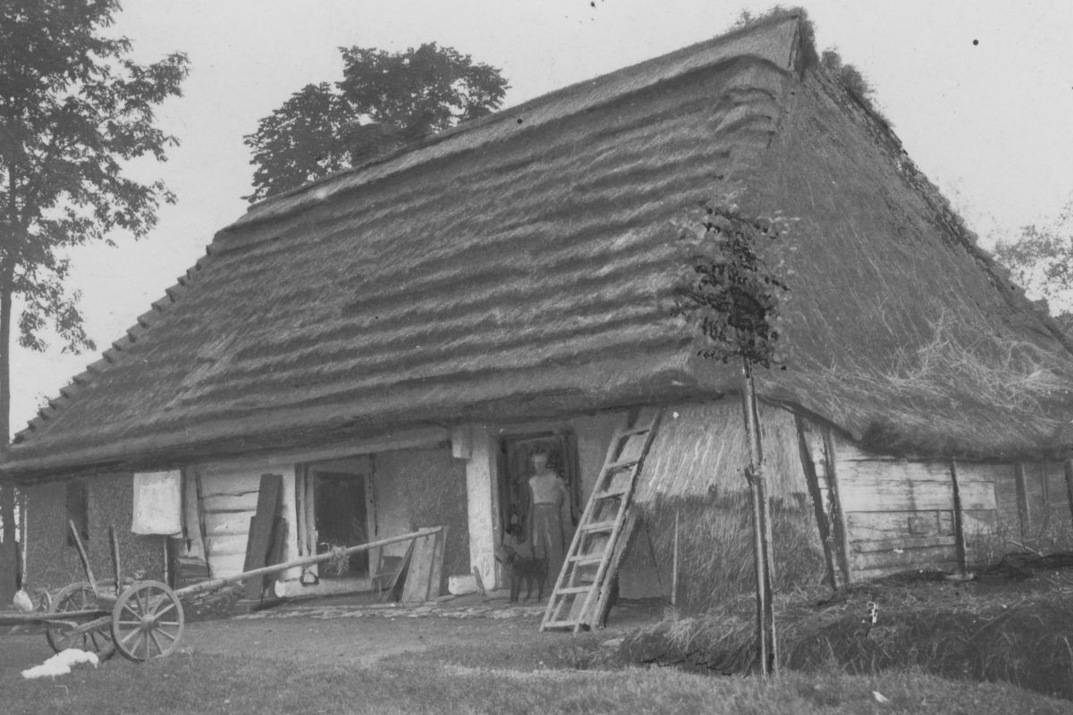 Była więc chata chłopska wznoszona z drewna i najczęściej kryta strzechą lub, rzadziej, dranicą. W drugiej połowie XIX wieku, kiedy swoje dzieła piszą Gloger i Kolberg, mało jest już chat kurnych, czyli pozbawionych komina. Ściany chałupy bielono wapnem lub wapnem z domieszką lakmusu, czasem dla ozdoby odciskając na białym tle wzór ze stempla czy odmalowując wycięty w tekturze rysunek. Jako podłogi powszechnie stosowano klepisko z ubitej ziemi lub gliny bądź polepę z mieszaniny gliny, sieczki, plew czy trocin, o dobrych własnościach izolacyjnych. Z rzadka tylko, głównie w bogatszych domach, wykonywano podłogę z desek.