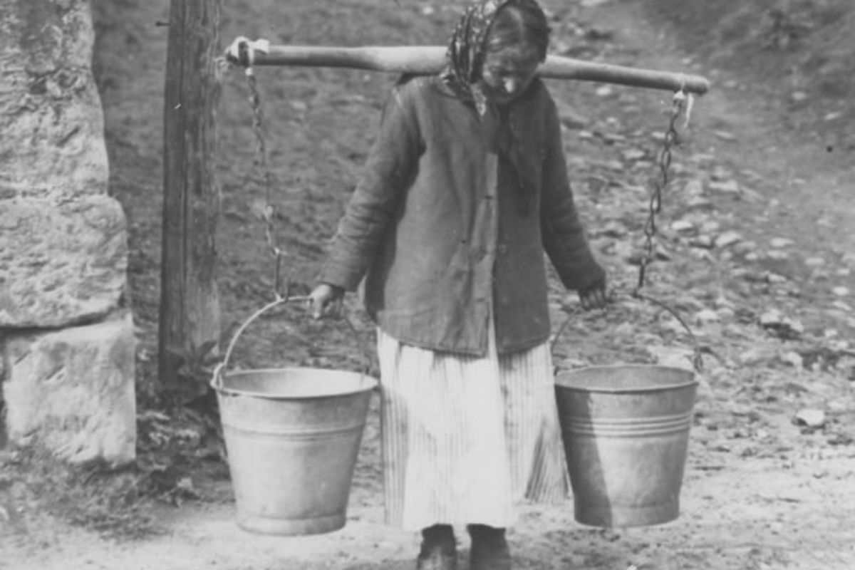 Ileż ona nachodzi się od jednego naczynia do drugiego, nazgina, podnosi, dźwiga. Cały dzień biega od garnka do studni, od studni do chlewa i stajni, od chlewa w pole do pracy, a wieczorem, gdy inni domownicy znużeni pracą wypoczywają, szyje, ceruje, prasuje przy słabym świetle.